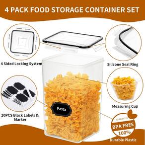 - Pacote superior: este conjunto de organizadores de cozinha e armazenamento vem com 4 peças (6,5 L / 6,236 g / 5,9 qt) grandes recipientes de armazenamento de alimentos com tampas herméticas. Estes conjuntos de recipientes para a cozinha têm 20 etiquetas, 1 marcador e 1 copo medidor para equipar você com tudo. Os rótulos reutilizáveis podem reduzir sua confusão sobre esses alimentos semelhantes. O copo medidor será muito útil durante o cozimento! O conjunto de armazenamento de recipientes de cereais fará com que tudo pareça limpo e em ordem