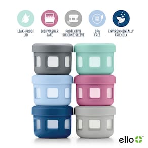Recipientes de plástico reutilizáveis para condimentos Ello, 4 onças cada, com tampa rosqueada à prova de vazamentos, pacote com 6 | Perfeitos para molhos para salada, lancheira para piquenique e viagem | Sem BPA | Lavável na máquina de lavar louça | Açúcar - O que há dentro: o conjunto inclui (6) recipientes de condimentos de 4 onças. Embale facilmente seus molhos para salada, molhos, coberturas ou molhos sem se preocupar com vazamentos em qualquer lugar ou guarde seus deliciosos molhos para mais tarde. - EXTREMAMENTE DURÁVEIS: esses recipientes são feitos de plástico durável sem BPA e reforçados com capas de silicone para resistir a quedas. - TAMANHO PERFEITO: 4 onças é o tamanho perfeito para homus, manteiga de amendoim, molhos, molhos para salada e muito mais! Não é só para lanches - guarde suprimentos artesanais e todo tipo de pequenos tesouros para mais tarde. - À PROVA DE VAZAMENTOS: Nossas tampas de rosca vêm com anéis de borracha para selar o frescor e evitar derramamentos incômodos em sua lancheira. Aproveite suas refeições sem se preocupar com vazamentos. - FÁCIL DE USAR: Todas as peças podem ser lavadas na parte superior da máquina de lavar louça, congelador e micro-ondas sem tampa. Não cozinhe nem ferva. Altas temperaturas podem danificar o recipiente e levar à liberação de microplásticos. Consulte cuidados e uso para obter instruções detalhadas.