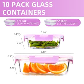 - Conjunto de recipientes de vidro com 10 unidades – você pode obter um conjunto de 10 recipientes de armazenamento de vidro com 2 capacidades: Retângulo de 5 x 963 g e retângulo de 5 x 340 g. Nossos recipientes de vidro são perfeitos para uma variedade de ocasiões: academia, escritório, piquenique, festa, viagens, ao ar livre e interno.