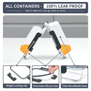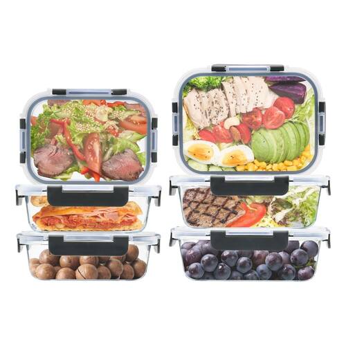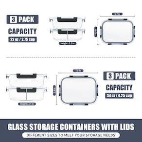 Os recipientes de armazenamento são adequados para uso na geladeira e freezer, máquina de lavar louça, micro-ondas e forno. Elas também são resistentes a odores e manchas, fáceis de limpar, ótimas para manter sua geladeira arrumada e manter a comida fresca. Há uma variedade de tamanhos econômicos neste conjunto de recipientes, redondos, retângulos e quadrados - você sempre pode encontrar o recipiente certo para entreter, servir e levar comida para festas. Dicas: Remova as tampas antes de colocar o recipiente de vidro no micro-ondas, forno e lava-louças. - ?Pacote com 6 recipientes de armazenamento de vidro?O conjunto inclui (3) recipientes retangulares de 2,75 xícaras e (3) recipientes retangulares de 4,25 xícaras, além de tampas, para um total de 12 peças - ?Uso diário?Os recipientes grandes (963 g) e pequenos (623 g) são versáteis para diferentes usos: alimentos para preparação de refeições, sobras, molho, almoço para viagem, piquenique, acampamento. - ?Armazenamento empilhável para economizar espaço?Os recipientes de armazenamento de alimentos duráveis se empilham uns nos outros para facilitar o armazenamento quando você não os usa, que se encaixam perfeitamente em armários de cozinha. - ?Forno/micro-ondas/freezer/máquina de lavar louça? os recipientes de vidro são feitos de vidro de borossilicato de alta qualidade capaz de suportar --15.6 °C a 400.0 °C (-20 °C – 400 ?), aguentam muito bem da geladeira direto ao micro-ondas. - ?Tampa hermética 100% à prova de vazamento?Os recipientes de vidro para alimentos são projetados com vedações de silicone removíveis e travas de encaixe de 4 dobradiças para garantir zero vazamento ou derramamento, o que também evita que o cheiro saia e mantém os alimentos frescos. - ?Livre de BPA e material de grau alimentício?Os recipientes de vidro para alimentos são 100% livres de BPA, vidro cristalino, facilitando a visualização do que está dentro. Material resistente a manchas para facilitar a limpeza e manter os recipientes de vidro como novos. - ?Atendimento ao cliente?Estamos comprometidos em fornecer a cada cliente o mais alto padrão de atendimento ao cliente. Se você tiver algum problema, sinta-se à vontade para entrar em contato com nosso atendimento ao cliente, estamos sempre aqui para você.