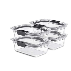 Rubbermaid Recipientes de alimentos Brilliance Glass Storage de 3,2 xícaras com tampas - À prova de vazamento e hermético: os recipientes de armazenamento de alimentos de vidro Rubbermaid Brilliance têm tampas cristalinas que são 100% herméticas e à prova de vazamentos, além de resistentes a odores e manchas - Fácil armazenamento e reaquecimento: os recipientes de vidro têm tampas ventiladas e seguras para micro-ondas para micro-ondas fácil e resistente a respingos - Economia de espaço: os recipientes Rubbermaid modulares que economizam espaço são perfeitos para empilhamento e organização - Seguro para forno: as bases de vidro são seguras para forno até 450 graus F, então elas funcionam como panelas de vidro e utensílios para servir - Fácil de usar: livre de BPA, lavável na lava-louças (use a prateleira superior para tampas), seguro para micro-ondas para reaquecimento apenas com tampas destrancadas e seguro para freezer - Dimensões: 4,875 x 8 x 5,25