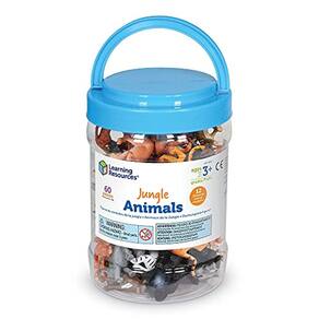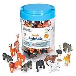 Quantos animais você pode encontrar na selva hoje? Que sons fazem? Este conjunto de animais exóticos da selva, cinco de cada uma das 12 espécies, transporta a mente de seus filhos para terras distantes à medida que aprendem a contar e classificar. Também ensina a apreciar a vida selvagem. Os animais medem entre 2" e 3 1?2". Inclui Você Sabia? fatos divertidos para animais e uma banheira de armazenamento de plástico.