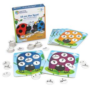 Learning Resources Jogo 10 on the Spot Ten Frame - 2-6 jogadores, crianças a partir de 5 anos, jogos de aprendizagem de matemática para crianças, atividades de jardim de infância - Jogo estilo bingo onde o objetivo é fazer 10 - Reforça os conceitos de contagem, correspondência e base de dez números - As cartas apresentam dez quadros de um lado para iniciantes e números na parte de trás para jogadores mais avançados - Inclui 6 cartões de dupla face e 72 peças "spots" - A partir de 5 anos