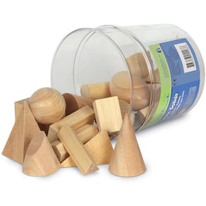 . Formas tridimensionais comuns feitas de madeira lisa e sólidaIdentifique, analise e compare formas geométricas 3DInclusas cubos, cilindros estreitos e largos, hemisfério, , elipsoide, cone, elipsoide e parabola cones, pirâmides triangulares e quadradas, e 8 prismasSSs medem 2"-3"Ideal para idades 6+