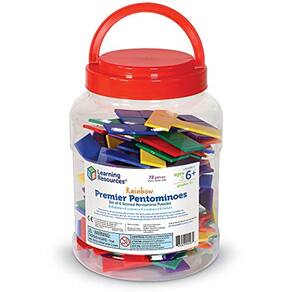 Do Fabricante The Learning Resources Rainbow Premiere Pentominoes é um conjunto de 72 peças de peças de jogo coloridas em uma banheira de armazenamento de plástico. Este jogo divertido e educativo vem com notas de ensino e é projetado para crianças de 6 a 13 anos de idade. O que está na Caixa 72 Pentominoes Peças em uma banheira de plástico e notas de ensino. Descrição do produto Ensine às crianças conceitos geométricos, pensamento crítico e habilidades de resolução de problemas. 6 pentominoes pontuados em vermelho, azul, verde, amarelo, laranja e roxo são armazenados em uma banheira de plástico transparente. guia de atividade Incluído. 72 peças ao todo.