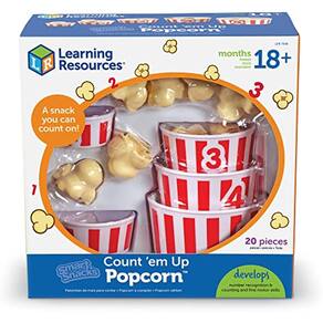 Maneira lúdica de construir senso numérico e reconhecimento, e praticar conjuntos de contagem. Inclui 15 pedaços de pipoca jumbo para contar em 5 tigelas de tamanhos diferentes (impressas com números de 1 a 5). As tigelas nidificam para armazenar — as maiores medem 21/4" x 43/4" de diâmetro. Crianças (2+). Conjunto de 20.