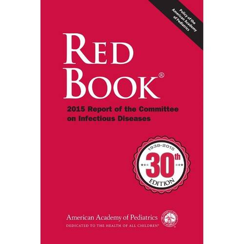 The 2015 Red Book is the American Academy of Pediatrics authoritative guide to manifestations, etiology, epidemiology, diagnosis, and treatment of more than 200 childhood conditions.It provides evidence-based guidance to practicing clinicians on pediatric infections and vaccinations based on the recommendations of the committee as well as the combined expertise of the CDC, the FDA and hundreds of physician contributors.The Red Book is an essential reference for pediatric infectious diseases specialists and general pediatricians, and is useful for family medicine and emergency medicine physicians as well. Public health and school health providers, medical residents and students also will find it a high-yield source of pediatric infectious disease and vaccine information.The book is divided into sections that ... erActive and passive immunizationDisease summariesAntimicrobial therapy for treatment and prophylaxisCare of children in special situationsUpdated information and recommendations you cannot afford to be without...Standardized approach to disease prevention through immunizations, antimicrobial prophylaxis, and infection control practicesNew chapter on Hemorrhagic Fevers Caused by Filo ... es has been addedNew chapter on human parecho ... infections has been addedUpdated information on hypersensitivity reactions after immunizationsThe latest on sexually transmitted infections (STIs) in adolescents and childrenUpdated ... erage of actinomycosis, amebiases, arbo ... , bacterial vaginosis, blastocystis, candidiasis, Clostridium difficle, ... es, dengue, entero ... es, Escherichia coli, Giardia intestinalis, gonococcal infections, Helicobacter pylori infections, lyme disease, meningococcal infections, pediculosis capitis, pertussis, pneumococcal infections, rota ... , and moreManaging Injection Pain has been significantly expandedUpdated information on hepatitis CUpdated information on group B streptococcal infectionsUpdated section on drugs for parasitic infectionsSignificantly revised chapter on Respiratory Syncytial ... Recommendations for using MMR or MMRV ... have been updatedThe Antimicrobial Resistance and Antimicrobial Stewardship chapter has been significantly broaded and updatedUpdated information on ... And much more!