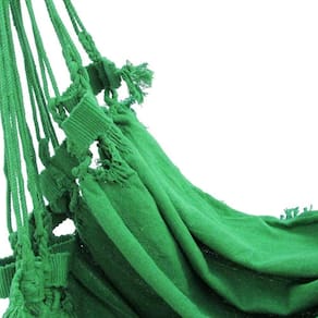 Feita de forma artesanal, a rede de cadeira é feita com 100% algodão tornando o material forte, firme, confortável e prático para higienização. E para aqueles que não querem furar teto, ou fixar ganchos, a rede cadeira proporciona uma vantagem de prendê-La com cordas. Largura do assento e também do encosto 72 cm Comprimento do assento e encosto 1,50 m Largura da madeira 4 cm Comprimento madeira 93 cm Altura total da cadeira 1,50 m Peso suportado 90 kg Peso total da cadeira com madeira 1,800 kg Com auxílio de cordas a cadeira pode ser facilmente instalada Não acompanha almofadas
