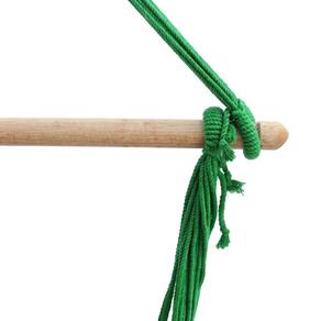 Feita de forma artesanal, a rede de cadeira é feita com 100% algodão tornando o material forte, firme, confortável e prático para higienização. E para aqueles que não querem furar teto, ou fixar ganchos, a rede cadeira proporciona uma vantagem de prendê-La com cordas. Largura do assento e também do encosto 72 cm Comprimento do assento e encosto 1,50 m Largura da madeira 4 cm Comprimento madeira 93 cm Altura total da cadeira 1,50 m Peso suportado 90 kg Peso total da cadeira com madeira 1,800 kg Com auxílio de cordas a cadeira pode ser facilmente instalada Não acompanha almofadas