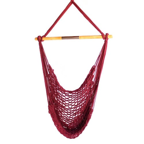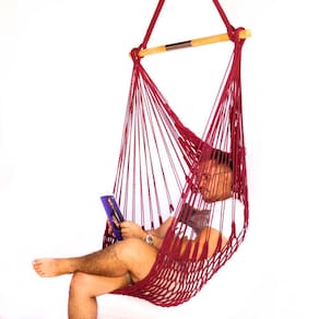 Conheça nosso modelo de Rede Suspensa ou Rede Cadeira Trançada. Esse modelo de rede cadeira é feita em cordão 100% algodão, altamente reforçado. Seu trançado parece uma rede tarrafa, não contém nós, dando mais conforto ao usuário.
