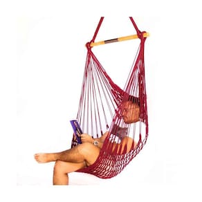 Rede Cadeira Trançada Vinho DESCRIÇÃO: A Rede Cadeira trançada pode ser instalada em qualquer ambiente quer seja interno ou externo. Para ambientes externos, por ser um produto de algodão, recomendamos que a rede seja guardada em dias chuvosos e que evite sol.