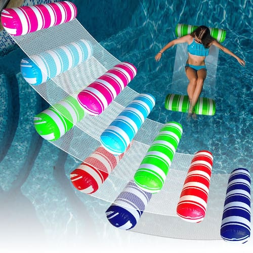- Flutuadores de piscina 4 em 1: você pode usar a rede, a espreguiçadeira, o andarilho e o selim de exercícios em 4 posições para se divertir na água.
