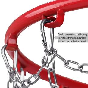 Esta cesta é feita de tecelagem em corrente de aço inoxidável 304, durável e permanente contra ferrugem, evita o problema de troca frequente da rede de basquete, o produto líquido é feito de metal, o centro de gravidade está inclinado, o vento não muda de forma e posição. - Rede tecida de corrente de aço inoxidável 304, anti-ferrugem permanente, durável. Malha tecida de corrente de aço inoxidável 304, anti-ferrugem, durável. (com chaveiro da marca Dakzhou)! - 12 conexões rápidas são conectadas diretamente ao quadro de basquete, fáceis e rápidas de instalar! - Instalação de fivela de conexão rápida para cestas de basquete! - O produto é feito de metal, o centro de gravidade está inclinado, o vento não mudará de forma e posição!