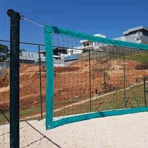 - Dimensões: 8,20m C x 1,00m A - Faixas: 4 faixas de Lona PVC com cordas e ilhós de latão - Fio: 2mm de polietileno, 100% virgem, com tratamento Anti-UV - Malha: 5x5cm Cor da faixa: Verde Praia