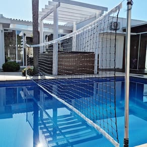 Medindo 5,00m de comprimento por um 1,00m de altura, a Rede de Biribol Vôlei de Piscina da Gismar Redes é ideal para uso Amador/Semiprofissional. Esta rede de vôlei de piscina é confeccionada com polietileno 100% virgem e possuem tratamento Anti-UV, prolongando a durabilidade da rede em diversas condições.