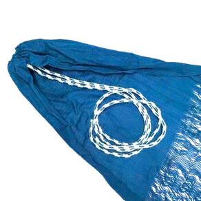 A rede de descanso tem um reforço com malhas fechadas nas duas extremidades, tornando a um produto seguro e resistente, suportando 150kg aproximadamente.