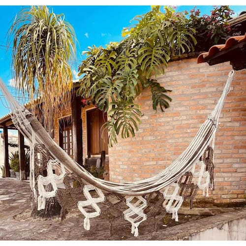 A Rede Luxo é conhecida por sua elegância, beleza e resistência. Indicada para ser Utilizado em varandas, dormitórios e salas. Com um ótimo custo benefício. As redes Luxo varandas são confeccionadas artesanalmente feita à mão, assim como seus trancelins e demais acabamentos, constitui uma belíssima peça de decoração para seu ambiente. INFORMAÇÕES ADICIONAIS: Modelo: Rede Casal Luxo Peso unitário aproximado: 3,400 kg Capacidade Máxima de Carga: 300 Kg Dimensões: Medida do tecido - 2,70m / Medida dos punhos - 1,30m Distância Ideal dos Ganchos: Aprox. 3,60 a 3,80 m Comprimento Total: 4m Composição: Tecido 100% Algodão Altura Ideal dos Ganchos: Aprox. 1.90 Tecido macio e super confortável A medida pode ter uma pequena variação ITENS INCLUSOS: 01 Unidade de Rede Casal Luxo Reforçada Marca: Não Informado