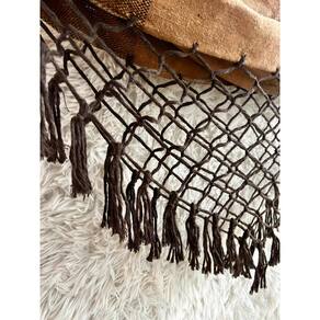 Características: Material Premium: Feita com 100% algodão de alta qualidade, garantindo maciez, resistência e respirabilidade superior. O algodão é conhecido por sua capacidade de absorção de umidade, mantendo você seco e confortável. Dimensões Generosas: Comprimento total de 3,80 metros e tecido de 2,35 x 1,50 metros, oferecendo um espaço amplo e confortável para relaxar e dormir. Capacidade de Peso: Suporta até 200 kg, ideal para dois adultos relaxarem juntos. Instalação Recomendada: Instale os ganchos a uma altura de 1,40 a 1,80 metros do piso e mantenha a distância entre eles de 2,40 a 3,50 metros. Essas são orientações para uso ideal, mas você pode ajustar a instalação conforme suas preferências. Design Artesanal: Franjas feitas à mão de 40 cm e cordas grossas de 72 cm proporcionam um charme rústico e segurança robusta.