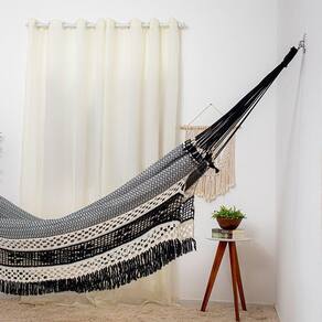 Desfrute de momentos tranquilos e relaxantes nesta rede de descanso feita com materiais de alta qualidade. Invista na sua qualidade de vida e adquira agora a Rede de Dormir Casal Ostra Preto com Bege. Encontre outras opções de redes de descanso em nossa loja.