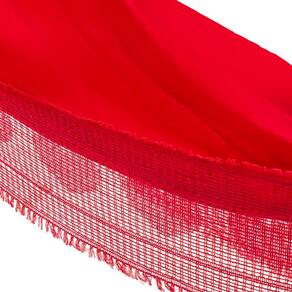 A Rede de Domir Casal Sol a Sol Vermelho foi confeccionada em tecido de brim 100% algodão, é antialérgica e não solta tinta. O seu tecido é bastante liso e tem muita semelhança com o lençol. Sua gramatura é de 240 gramas por m2 e é altamente resistente.