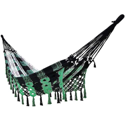 Rede De Dormir Descanso Casal King Luxo Verde Xadrez A rede mais usada quando se trata em decorar ambientes, uma bela rede luxuosa muito usada em apartamentos e espaços externos tamanho perfeito para duas pessoas com muito conforto devido ao seu tecido muito macio e frio. As franjas grossas feitas a mão em formato de escamas deixam a rede mais bela. Especificações -tamanho tecido 2,60 m x 1,60 m -peso 3,200 kg -capacidade de peso 220 kg -tamanho total aproximadamente 4,10 m -punho 70cm cada um -não Solta tinta e não Desbota -composição Algodão Esse produto e feito para você que gosta de uma boa rede para descansar e ao mesmo tempo inovar a decoração de seu ambiente com ótimo custo benefício, um produto que vale muito a pena