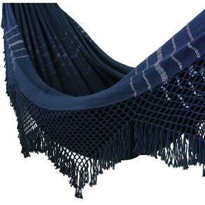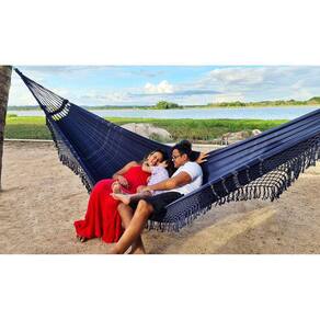 Rede de Dormir Descanso Casal Super King Azul Gigante A rede super king toda feita em algodão, possui grandes dimensões para acomodar com conforto duas pessoas de grande estatura Confeccionada com algodão de alta qualidade que garante sua resistência e durabilidade.Especificações-comprimento total da rede 470 cm-comprimento total do tecido 300 cm-largura total do tecido 180 cm-capacidade máxima de peso 250 kg-peso total da rede 3,000 kg-composição 100% algodão Instalação recomendada-altura média do gancho em relação ao chão 160 cm-distância média entre os ganchos 330 cmAs informações acima podem variar de acordo com o ambiente que será feita a instalação da rede.