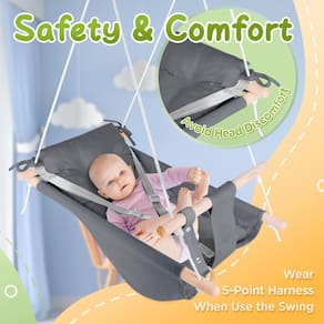 Nosso balanço infantil gosta de estar nos braços da mamãe, os balanços podem ser pendurados sempre que você quiser - em ambientes internos ou externos. Em casa – quarto das crianças, sala de estar ou até mesmo na cozinha, onde o bebê balançando permite que você tome seu café da manhã. Ou talvez no jardim? Onde seu filho pode se sentir relaxado ao ar livre! Nosso design exclusivo permite que seu bebê tenha contato visual com você e não se distraia com o ambiente. - 3 modos de crescimento com o seu bebê: você pode fazer o balanço da soneca do bebê mudar para o "modo de balanço do bebê", "modo de rede de bebê" e "modo de balanço da cadeira infantil" em 3 modos diferentes, ajustando os nós da corda. Rede multifuncional para bebês que crescem com meninos e meninas de 12 a 36 meses. Altura ideal recomendada para uso do bebê: 105 cm - Atualize o cinto de segurança de 5 pontos: para proteger melhor a segurança do bebê e da criança, estamos equipados com um cinto de segurança ajustável de 5 pontos. Se o seu bebê não gostar do arnês de 5 pontos, nosso arnês também pode ser convertido em um arnês de 3 pontos. Certifique-se de que eles sejam mantidos no balanço durante o uso do nosso assento giratório para bebês - Balanço de lona confortável: em comparação com o balanço tradicional de plástico rígido, o balanço de lona é mais macio e confortável, também estamos equipados com uma almofada removível de peça única que é muito flexível e dá suporte - Material resistente de qualidade: nossa rede para bebês é feita de 100% algodão. A almofada macia e o tecido de lona são removíveis e fáceis de limpar. A madeira de faia natural de alta qualidade é polida para proteger a pele delicada do bebê. Para evitar que o material de algodão fique mofado, não use o balanço em um ambiente úmido ou em um dia chuvoso - CONFIGURAÇÃO SIMPLES INTERIOR E EXTERIOR (a página de listagem tem um vídeo de montagem detalhado): Todos os acessórios de instalação necessários estão incluídos no pacote, você pode consultar as instruções para instalar, muito simples. Vem com 2 suportes para instalação externa e interna. O balanço de rede para o bebê pode ser instalado na sala de estar, varanda, quarto do bebê, pátio ou pendurado na árvore. Observação: Amarre todos os nós firmemente antes de usar o balanço de madeira para bebês
