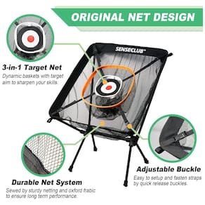 A Rede de Chip de Golfe da SENSECLUB é o equipamento ideal para aprimorar suas habilidades de curta distância no golfe. Inspirada na prática diária do esporte e no jogo de cornhole, possui um design inovador com 3 cestas dinâmicas e um alvo central para trazer diversão e desafio aos golfistas. Com estrutura super estável feita de liga de alumínio premium, permite que os jogadores treinem ao ar livre sem se preocupar com quedas, mesmo em dias ventosos. Montagem e desmontagem fáceis em apenas 30 segundos, com fivelas de liberação rápida e alças para fixar as cestas e o alvo. Ideal para treinar chipping no quintal ou em casa, mantendo suas habilidades afiadas com a ajuda dos acessórios para alvo de golfe. Adquira já a sua e eleve seu jogo para o próximo nível!