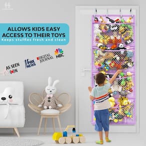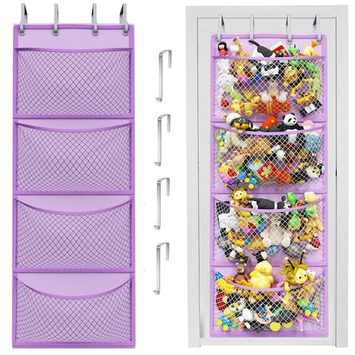 Honeyera Armazenamento de pelúcia (patente pendente) – Rede de pelúcia sobre a porta organizadora para objetos de pelúcia, acessórios para bebês, brinquedo/rede de armazenamento para pendurar para - Armazenamento prático de animais – o organizador de animais de pelúcia perfeito para armazenar e organizar facilmente seus brinquedos favoritos em nossa unidade de armazenamento sobre a porta. Fácil de configurar, durável e permite que as crianças tenham acesso conveniente aos seus brinquedos. Equipado com bolsos de malha respirável mantendo seus enchimentos frescos e limpos - Armazenamento exclusivo para pendurar brinquedos – fornecendo quatro ganchos de metal resistente e uma bolsa dobrável de 160 cm de comprimento x 63 de largura com quatro compartimentos de bolso de malha, há espaço mais do que suficiente para seus brinquedos nesta unidade de armazenamento de animais de pelúcia pendurada. A cor branca neutra combina com qualquer decoração de sala e não ocupa espaço no chão ou na parede - GARANTIA DE SATISFAÇÃO DO COMPRADOR – Embora as ideias típicas para exibir animais de pelúcia ocupem valiosos espaço na prateleira e no chão e mantêm os enchimentos fora de vista ou fora de alcance, esta alternativa única de armazenamento de porta para armazenamento de saco de feijão, uma rede de brinquedo ou várias cestas para animais de pelúcia vem com uma garantia de devolução do dinheiro em 30 dias - Armazenamento pendurado na porta – ideal para enchimentos, acessórios de bebê como fraldas ou para armazenar outros artigos macios. Ao contrário de uma cadeira de pufe de armazenamento de animais de pelúcia, você pode usá-la como um armazenamento de banheiro sobre a porta, no seu quarto, ou como um organizador de porta na sua lavanderia, ou para manter tudo organizado no trailer ou trailer - Limpo e organizado – pais e crianças lutam para manter todos aqueles enchimentos, brinquedos ou acessórios de bebê armazenados ordenadamente, então este organizador de armazenamento é o presente perfeito para chá de bebê, presente de Natal ou presente de inauguração de casa. Eles vão pensar em você toda vez que usarem esta solução prática e criativa de armazenamento vertical