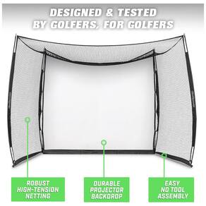 A tela de impacto de poliéster tecido em alta densidade proporciona um cenário durável para uso com simuladores de golfe (simuladores e projetores não incluídos). Feito com fibra de vidro resistente, rede ultradurável e tela de impacto reforçada, o Range Cage suporta todos os tipos de velocidades de swing.