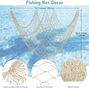 - Rede de exibição: as redes de decoração de pesca oceânica podem ser usadas para exibir alguns itens, como fotos, cartões postais e assim por diante, além disso, as redes de pesca podem ser combinadas com conchas, peixes de brinquedo e outros acessórios, delicados e maravilhosos, adicionando um toque às suas festas de piratas ou festas no mar