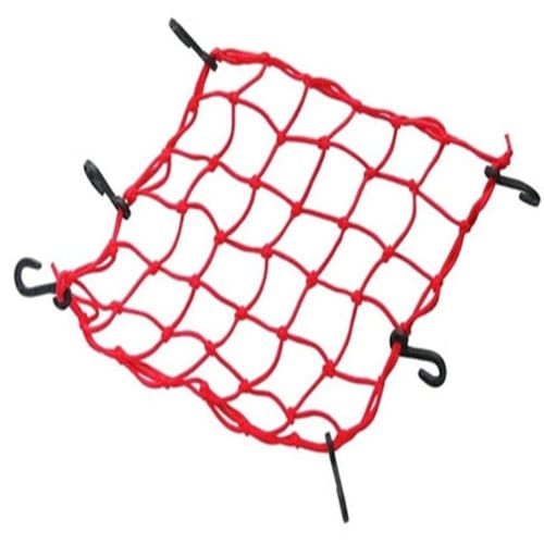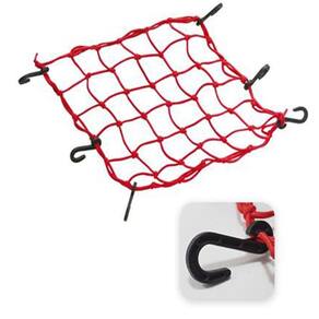 Rede elástica para bagageiro de motos medindo 45 cm x 45 cm com 6 ganchos. Disponível nas cores azul, laranja, preto, verde e vermelho. Escolha a cor desejada antes da finalização do seu pedido.