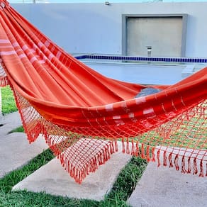 Por ser reforçada e suportar até 250 kg, é perfeita para mais de uma pessoa deitar e dormir sem perder o conforto devido ao seu tecido ser muito largo e um comprimento total jamais visto em uma rede para casal.
