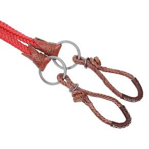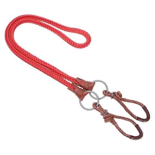 Rédea A Pantaneira fabricada em nylon trançado na cor Vermelha, possui ponteiras de couro com argolas de aço inox e charroas de couro.