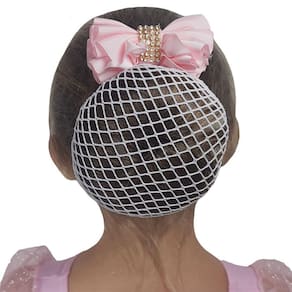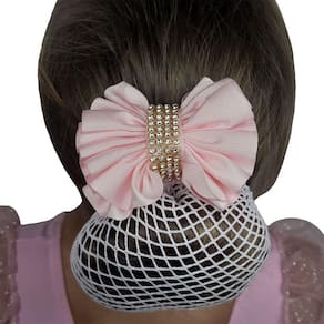 Redinha confeccionada em poliamida elástica, se que ajusta perfeitamente ao coque, o laço é composto em fita de gorgurão com aplicação de strass no centro do laço.