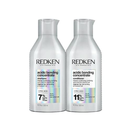 Redken Acidic Bonding Concentrate Kit - Sh + Cond 300ml Kit Redken Acidic Bonding Concentrate Duo 2 Produtos Renove e fortaleça a estrutura dos seus cabelos com o Kit Redken Acidic Bonding Concentrate Duo, um tratamento que repara danos profundos e restaura a saúde capilar. Este kit exclusivo combina dois produtos inovadores da linha Acidic Bonding Concentrate, formulados com tecnologia ácida para reconstruir as ligações internas dos fios, deixando-os mais resistentes, macios e cheios de brilho. Ideal para cabelos danificados por químicas, calor ou processos mecânicos, este duo oferece uma rotina completa de reparação intensiva. Benefícios do Kit: Reparação Profunda: Reconstitui as ligações internas dos fios bonding , reparando danos causados por descoloração, tinturas, alisamentos e uso de calor. Proteção Durabilíssima: A tecnologia Acidic pH fortalece a fibra capilar, reduzindo a quebra e o frizz. Brilho Intenso: Devolve a luminosidade natural dos cabelos, eliminando o aspecto opaco e ressecado. Maciez e Maleabilidade: Os fios ficam incrivelmente macios, fáceis de pentear e com movimento natural. Fórmula Enriquecida com Citrulina e Aminoácidos: Nutre e protege os cabelos durante e após o tratamento. Produtos Inclusos no Kit: Redken Acidic Bonding Concentrate Shampoo 300ml : Limpa suavemente enquanto inicia o processo de reparação das ligações capilares. Prepara os fios para o tratamento condicionador, garantindo melhor absorção dos nutrientes. Redken Acidic Bonding Concentrate Conditioner 250ml : Ativa a reconstrução das ligações internas dos fios, selando as cutículas e proporcionando hidratação prolongada. Oferece proteção térmica e reduz o volume, deixando os cabelos alinhados e brilhantes. Como Usar: Lave os cabelos com o Shampoo Acidic Bonding Concentrate, massageando suavemente o couro cabeludo e os fios. Enxágue bem. Aplique o Conditioner Acidic Bonding Concentrate nos comprimentos e pontas, deixando agir por 3 a 5 minutos. Para resultados intensivos, estenda o tempo para 10 minutos. Enxágue abundantemente. Para potencializar os efeitos, combine com o Leave-In Treatment da mesma linha vendido separadamente . Tecnologia Acidic Bonding: A linha Acidic Bonding Concentrate da Redken é inspirada em tratamentos de salão, utilizando um pH ácido ao dos fios saudáveis para: Reparar: reforça as ligações internas dos cabelos dissulfeto e hidrogênio . Proteger: cria uma barreira contra agressões externas. Revitalizar: restaura a textura e o brilho dos fios danificados. Por que Escolher o Kit Redken Acidic Bonding Concentrate Resultados Profissionais em Casa: Desenvolvido para replicar tratamentos de salão, com eficácia comprovada. Para Todos os Tipos de Cabelo: Desde cabelos finos até grossos, quimicamente tratados ou naturais. Free de Sulfatos, Parabenos e Sal: Seguro para cabelos coloridos e sensíveis. Fragrância Premium: Aroma fresco e sofisticado que permanece nos fios. Com o Kit Redken Acidic Bonding Concentrate Duo, você devolve a força, o brilho e a saúde aos fios, combatendo danos e prevenindo futuras agressões. Ideal para quem busca reparação intensiva e resultados visíveis desde a primeira aplicação. Para quem é indicado cabelos danificados por químicas, calor excessivo ou escovação. Pode usar em cabelos coloridos sim A fórmula protege a cor e evita o desbotamento. Quantas vezes usar por semana recomendado 2-3 vezes na semana para manutenção.