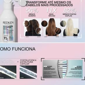 Tratamento capilar para cabelos danificados. Redken Acidic Bonding Concentrate pH Sealer reduz visivelmente a aparência de danos em um único uso.