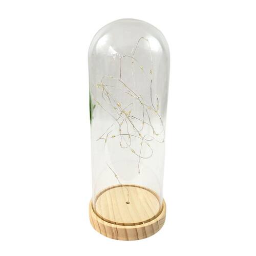 Redoma De Vidro Base Madeira Com Led 27X12Cm Cupula