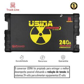 O Conversor USINA foi projetado para entregar o melhor desempenho possível efetuando a redução de tensão de sistemas 24 Volts para alimentar equipamentos 12 volt. Ele possui em seu circuito a topologia HALF-BRIDGE BUCK converter Síncrono em que se utiliza transístores MOSFETS de baixa perda com resistência interna de 2miliohms, isso garante baixa queda de tensão nos transístores traduzido em um alto rendimento acima de 92%, o que traduz em um produto leve e pequeno, porém, potente e robusto.