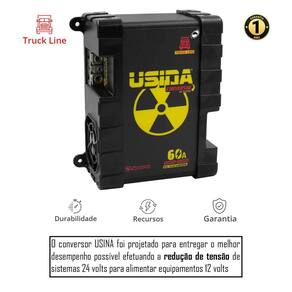 O Conversor USINA foi projetado para entregar o melhor desempenho possível efetuando a redução de tensão de sistemas 24 Volts para alimentar equipamentos 12 volt. Ele possui em seu circuito a topologia HALF-BRIDGE BUCK converter Síncrono em que se utiliza transístores MOSFETS de baixa perda com resistência interna de 2miliohms, isso garante baixa queda de tensão nos transístores traduzido em um alto rendimento acima de 92%, o que traduz em um produto leve e pequeno, porém, potente e robusto.