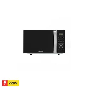Micro-ondas com capacidade de 25 litros, potência de 1100W, classificação energética A, funções +30 segundos, 6 receitas pré-programadas (Brigadeiro, pipoca, lasanha, pizza, bolo de caneca, menu fit), função descongelar, função Timer, desligamento automático, display digital e porta espelhada com pintura Limpa Fácil.Função Grill