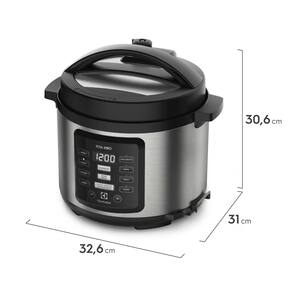 Cozinha silenciosa e controle total Desfrute de um ambiente tranquilo na cozinha, pois a Panela Elétrica de Pressão Electrolux é silenciosa durante o uso. O seletor manual de tempo oferece liberdade para ajustar o tempo ideal para cada receita, proporcionando controle total sobre o preparo.