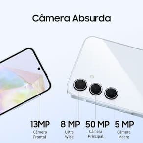 PRODUTO SITUAÇÃO REEMBALADO E OU REMANUFATURADO O Melhor da Fotografia Dentro do Seu Bolso Eleve sua experiência fotográfica com a Câmera Tripla de até 50MP do Galaxy A35 5G. Capture selfies perfeitas com a câmera de 13MP e utilize o Nightography para fotos incríveis mesmo à noite. E com o Apagador de Objetos, remova elementos indesejados das suas fotos.
