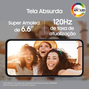 Elegância e Produtividade Em um Só Produto Desfrute de um design elegante e resistente em vidro com classificação IP67 contra água e poeira. Mergulhe em cores vibrantes e nitidez impecável na tela Super AMOLED FHD+ de 6.6, perfeita para assistir seus filmes e séries favoritos. O Vision Booster garante visualização perfeita sob qualquer luz solar.