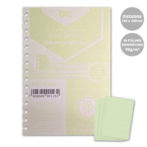 Refil caderno mini smart verde linhas brancas 48fls 90g/m então conte com o refil dac com o prático e inovador sistema de caderno, seu caderno fica sempre novo, não importa o quanto você escreva além disso, as linhas brancas, são ideais para quem digitaliza suas páginas, já que não aparece na digitalização e deixa a página ainda mais clean e organizada. A cor verde das páginas, deixa o caderno ainda mais bonito, suas anotações ficarão de arrasar características: - 48 folhas; - marca: dac; - folhas de papel verde com linhas brancas; - gramatura de 90 g/m; - tamanho mini smart: 138 x 200mm; - referência: 1839re. -imagens meramente ilustrativas- atenção: a cor do produto pode variar de acordo com o monitor atenção: o fabricante pode alterar a cor de alguma parte do produto sem aviso prévio. Ean: 7908689901232