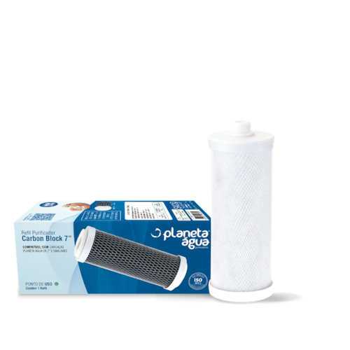 Benefícios - Elimina odores - Elimina sabores desagradáveis - Retém partículas barro, areia, ferrugem e sedimentos - Reduz cloro - Bacteriostático controla a proliferação de bactérias - Produto a ser utilizado com água potável, de acordo com a Portaria MS 2914 - Este produto produzido conforme a Norma ABNT NBR 16.098:2012 - Embalagem produzida a partir de fontes responsáveis certificada pelo FSC - Muito mais economia. 1 refil = 300 galões de 20 litros de água mineral ou 12.000 garrafas pet de 500 ml Compatibilidades Refil compatível com Carcaças FIT 7?? Planeta Água e outras. As marcas citadas são propriedades de seus respectivos fabricantes e aparecem apenas para demonstrar a compatibilidade deste produto. Características técnicas: Código: 1029 - Com TNT e Rosca