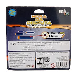 Informações do Produto: Chegou a hora da disputa e você não pode ficar de fora dessa. São 20 dardos de 13mm para disparar! Treine sua e acerte.
