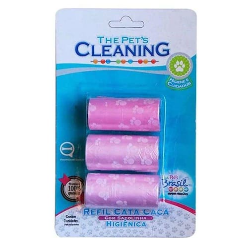 REFIL KIT CATA CACA C/ 3 UNID THE PET'S CLEANING Refil Kit Cata Caca Rosa The Pets Brasil Com 3 Unidades Informações: Indicada para Cães; Não vaza; Plástico biodegradável; Embalagem com 3 rolinhos; Rolo que facilita ao destacar. O Refil The Pets Cleanning Cata Caca para Cachorros, é a melhor opção de higiene para os passeios com o seu cachorro. É fácil de utilizar, prático de carregar e pode ser levado em todos os passeios. Dica Retire o saquinho do recipiente e com a mão dentro do saco, recolha as fezes do seu animalzinho, e dê um nó. Seja um cidadão em sua cidade conservando-a limpa e jogue as fezes do seu pet em uma lixeira. Indicações Pet: Cachorros ou Gatos Porte de Raça: Pequeno, Grande e Médio Idade: Adulto, Filhote e Sênior Material: Plástico