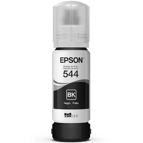 Garrafa de tinta preta T544 (T544120), para impressoras EcoTank L3150 e L3110. O refil T544 possui rendimento médio de 7500 páginas, com impressão de incrível qualidade e secagem rápida.