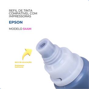 Refil de tinta magenta compatível com impressoras Epson EcoTank L3110 e L3150. Garante impressões vibrantes e nítidas.Características